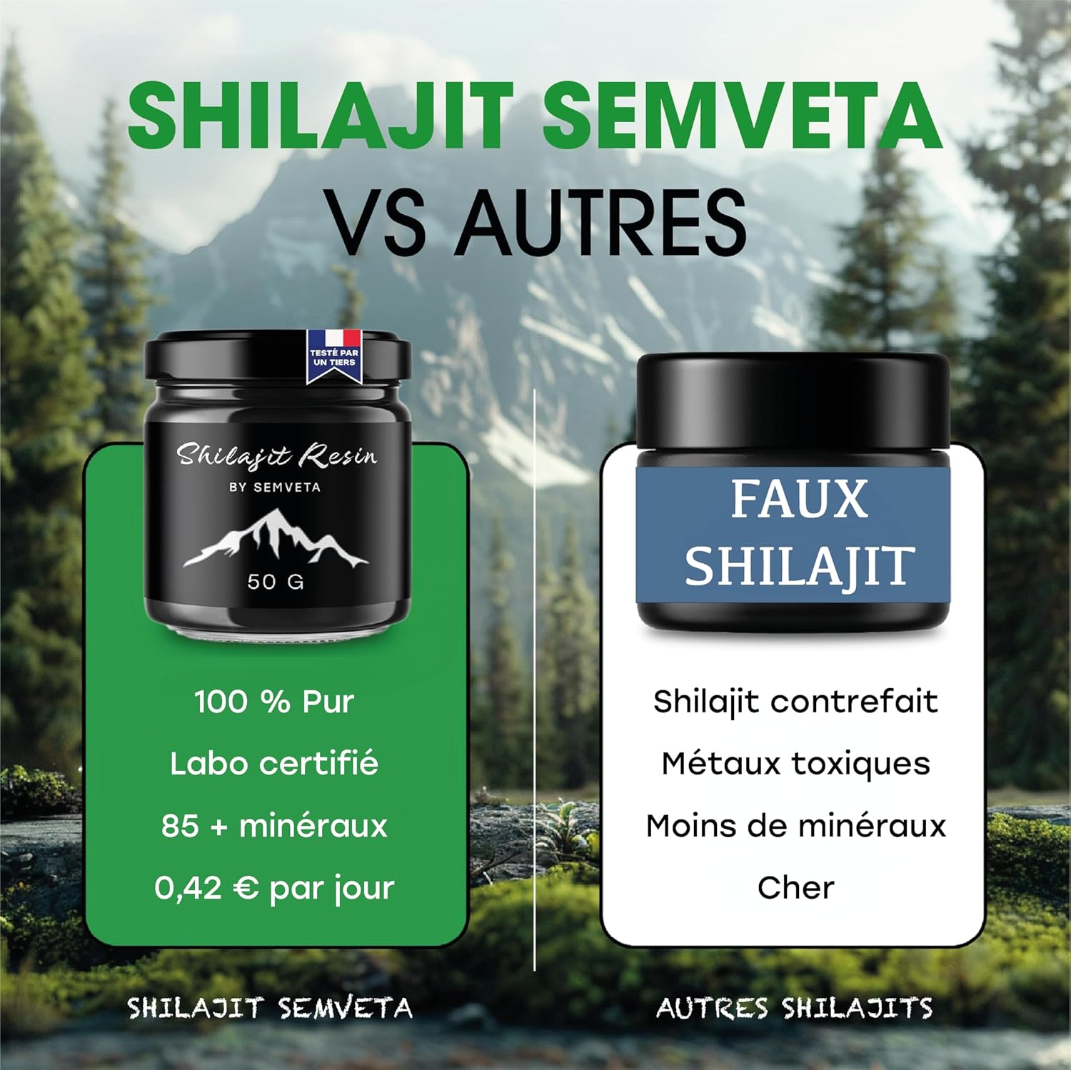 Des hauteurs immaculées de l’Altaï, le Shilajit Semveta concentre la puissance brute de plus de 83 minéraux essentiels. Triple distillation, filtration à froid, tests à la source : pureté et puissance garanties pour réveiller votre force, votre endurance et votre concentration.