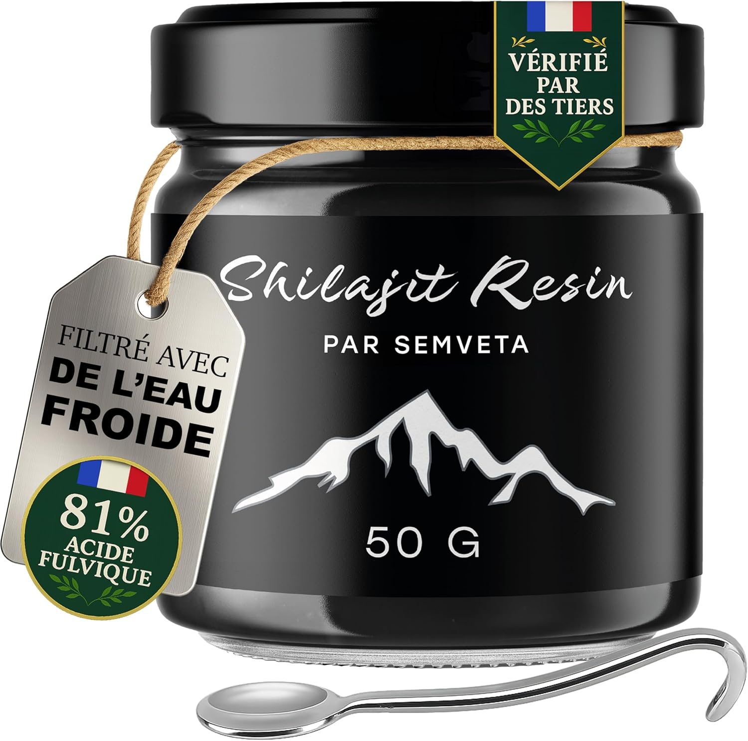 SHILAJIT PURE en Résine – EXTRA Concentré | Shilajit Himalaya Bio de Qualité Française | Action COMPLÈTE – Pur, Naturel | PREMIUM 50g | Très Haute Altitude