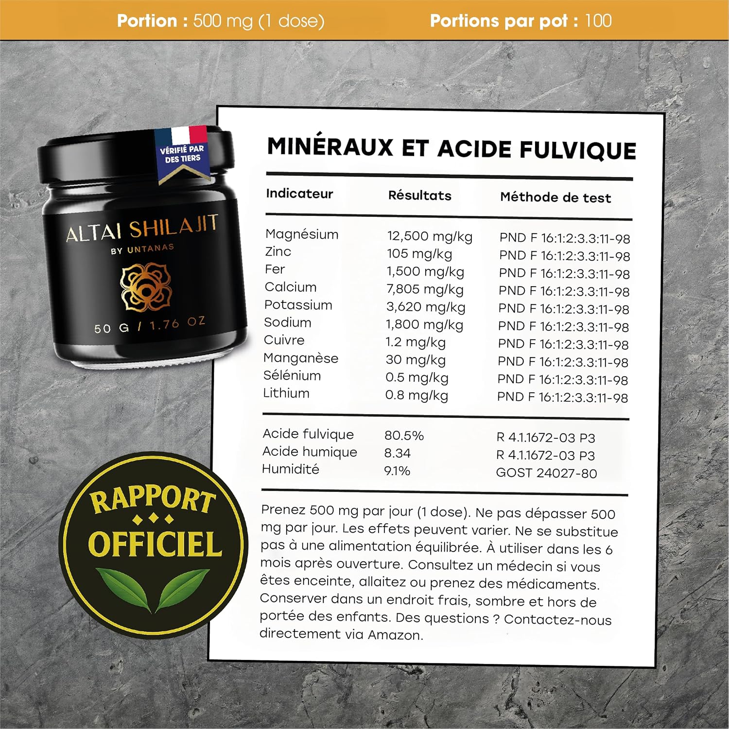 Chaque Lot Testé Par Un Laboratoire Indépendant Pour Garantir Un Taux Optimal D’Acide Fulvique Et L’absence De Métaux Lourds