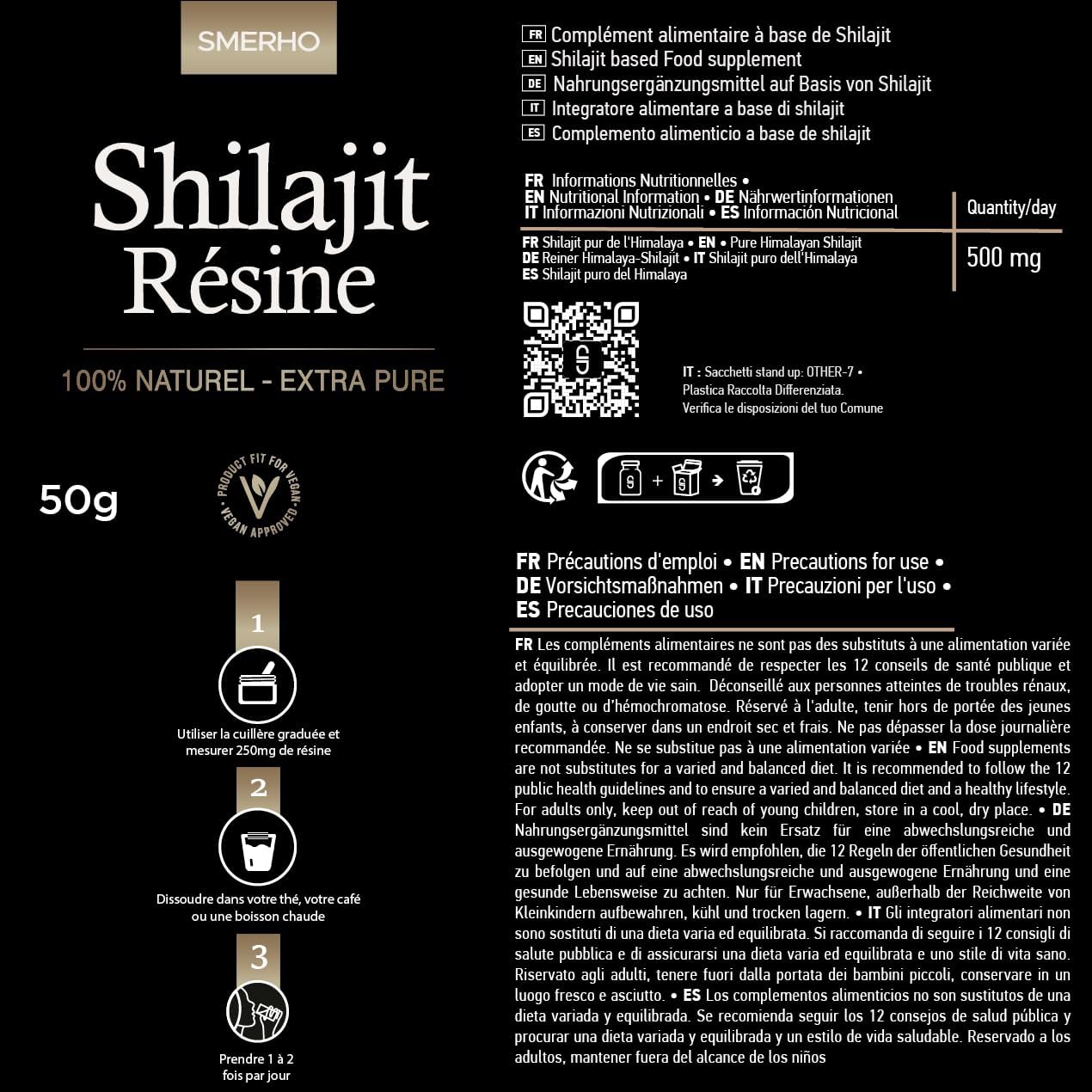 - a Pureté, Validée par la Science : Nous allions tradition et rigueur. Après une extraction respectueuse et une nano-filtration, chaque lot est soumis à des tests stricts dans un laboratoire français indépendant. Résultat : un shilajit pure certifié sans métaux lourds ni contaminants. Votre bien-être en toute sécurité.U