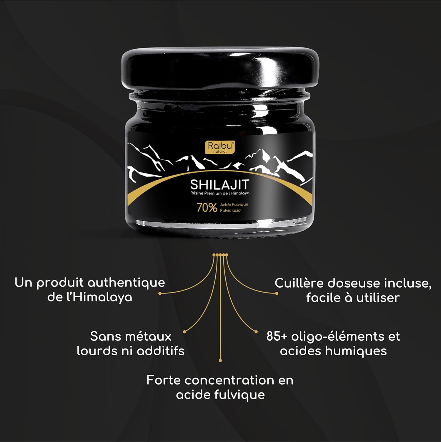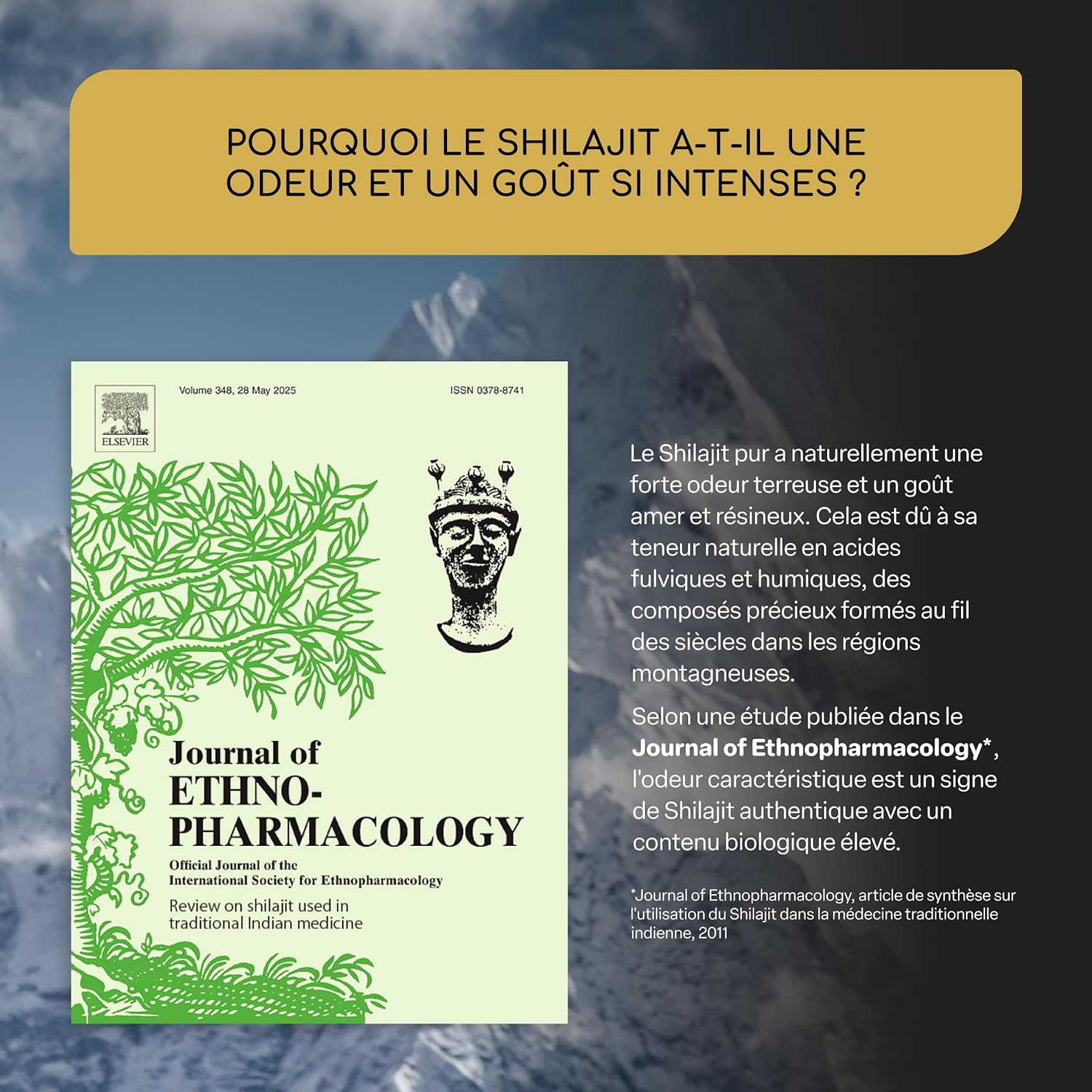 - GOÛT ET ODEUR NATURELS: Le shilajit de l’Himalaya présente une odeur terreuse intense et un goût amer caractéristique – des signes d’une résine authentique et non altérée. Ces propriétés proviennent naturellement des acides fulviques et humiques, sans additifs ni édulcorants.