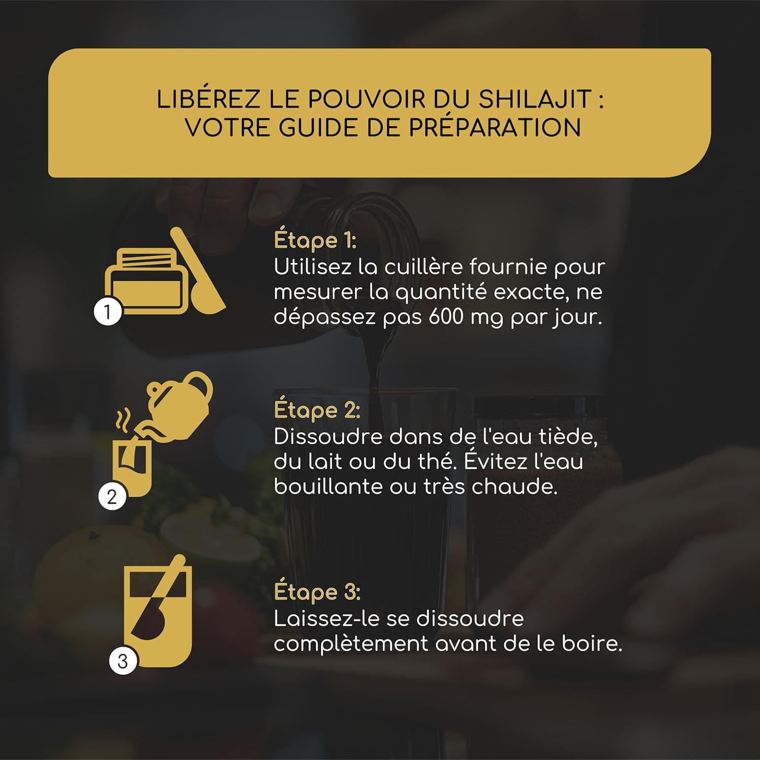 - FACILE À DOSER AVEC UNE CUILLÈRE MESURE: Notre résine de Shilajit est facile à doser grâce à la cuillère mesure incluse, qui permet de mesurer la quantité idéale. Dissolvez une petite portion dans de l’eau tiède, du thé ou votre boisson préférée pour une utilisation sans effort.