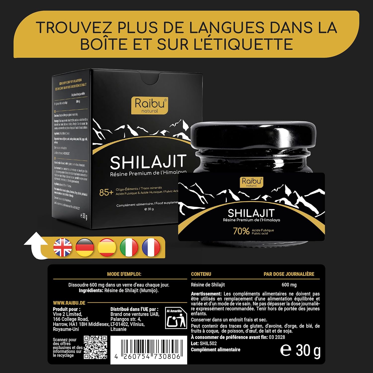 - NORMES DE QUALITÉ EUROPÉENNES: Notre Shilajit est produit dans des installations rigoureusement contrôlées selon des normes européennes strictes. Avec notre engagement envers la qualité et la transparence, vous pouvez être sûr que chaque lot est fabriqué et testé avec le plus grand soin pour répondre à vos attentes.