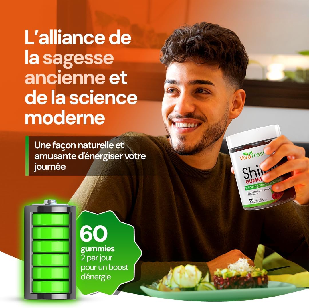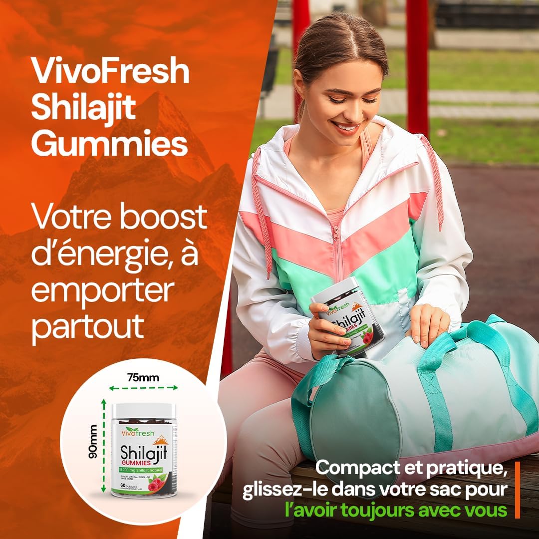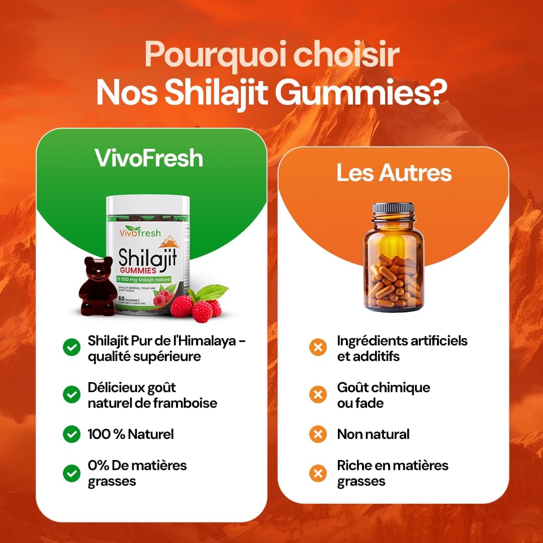 VivoFresh Shilajit Pur Himalaya | Boost d’Énergie Naturelle | 85 Minéraux & Acides Fulviques | Goût Framboise Délicieux | 60 Gummies – 18 000 mg